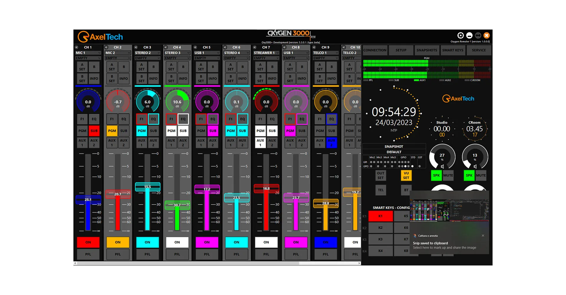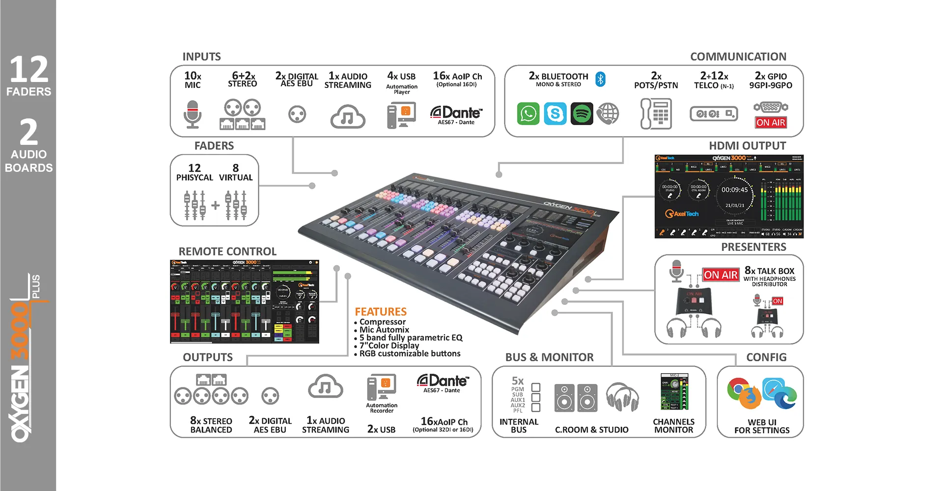Découvrez la table de mixage numérique Oxygen 3000 Plus de Axel Technology, un équipement de pointe conçu pour les professionnels de la radio et de l’audiovisuel. Cette console offre des fonctionnalités avancées et une qualité sonore exceptionnelle, idéale pour les studios de diffusion modernes.